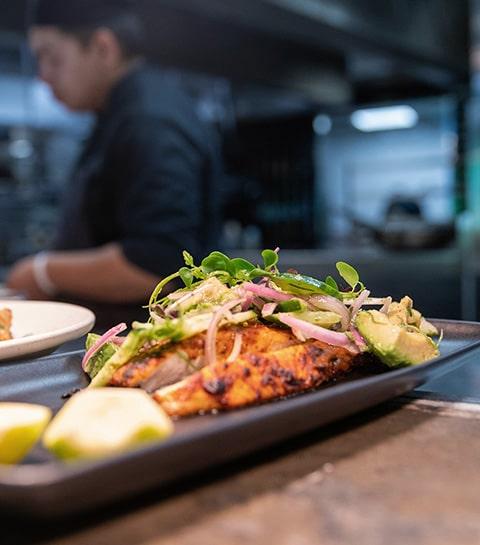 سس هلندیز، لوبیا سبز و گالت سیب زمینی.